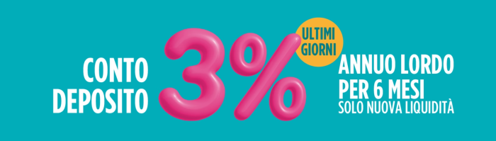 Con Crédit Agricole puoi ottenere il 3% sulle somme vincolate a 6 mesi. La scadenza di questa iniziativa è per domenica 2 novembre.