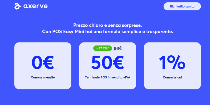 Finanza Personale Offerta lampo: POS Easy Mini Axerve a 50€, sicuro, smart e senza canone