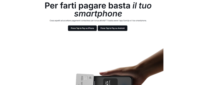 Con SumUp è possibile accettare pagamenti contactless direttamente dallo smartphone, trasformandolo in un vero POS grazie all’app gratuita. Chi preferisce può acquistare un terminale dedicato, pagando solo il prezzo una tantum del dispositivo e scegliendo poi tra due modalità: