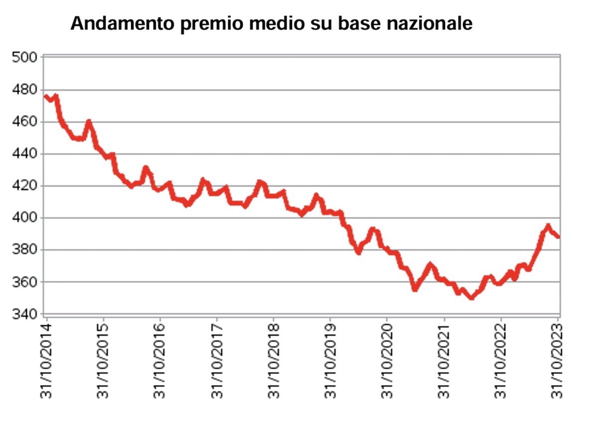 A mettere nero su bianco l’ammontare dell’aumento della Rc Auto è stato l’Ivass, che ha messo in evidenza che i consumatori, nel corso del mese di ottobre, devono pagare 388 euro in più. Siamo davanti ad un aumento, su base annua, del: